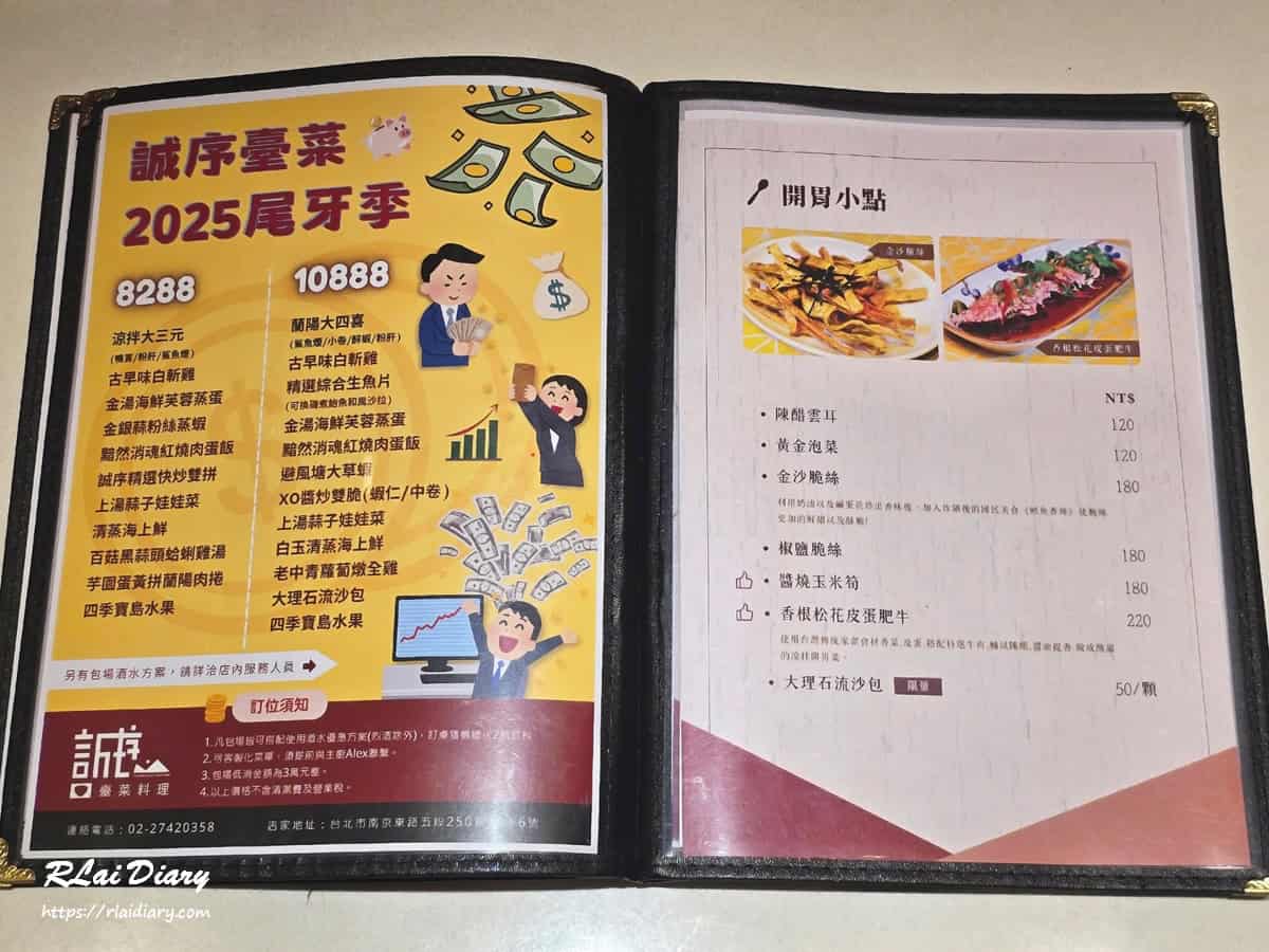 2025/11/02台北美食【台北※食】松山區|誠序臺菜料理|重新詮釋蘭陽風格美味誠序臺菜料理主打宜蘭家鄉味與現代台菜創意結合,重現蘭陽經典風味。餐廳以精緻台菜呈現西魯肉、涼拌三拼等招牌料理,無論是松山區聚餐、家庭聚會或公司宴請,都能品嚐到溫潤細膩的家常滋味,是台北必訪的宜蘭風味餐廳。 分享這篇文章 地址:臺北市松山區南京東路五段250巷18弄6號捷運:南京三民站3號出口步行約4分鐘電話:02-2742-0358連結:誠序臺菜料理臉書營業時間:星期一到星期五 12:00 – 14:30|17:30 – 21:00星期六與星期日 11:15 – 14:30|17:15 – 21:00 追蹤我的 Instagram 追蹤我的 臉書粉絲團 內容目錄 Toggle 誠序臺菜料理 介紹誠序臺菜料理 菜單誠序臺菜料理 餐點心得 誠序臺菜料理 介紹 位於南京東路巷弄內的誠序臺菜品牌以重新詮釋蘭陽美食為理念打造出兼具懷舊與創新的菜色是不少饕客們和企業聚餐的愛店 店址外觀低調卻不失餐廳氛圍透過玻璃窗能清楚看見店內用餐環境暖黃燈光在夜色中散發著家的感覺讓人經過時會有想進去吃飯的衝動 內部空間以溫潤的木質調為主軸搭配上橘紅牆面與柔和光線感營造出典雅又不失熱鬧的氣氛座位部分則提供了方桌和圓桌配置對家庭聚餐與公司聚會來說都適合 店內另外設置了半開放包廂空間提供更多的隱私與靜謐感適合商務宴請等不受打擾的聚會 誠序臺菜料理 菜單 這裡的菜單提供品項相當多元餐點結合了蘭陽風味與現代臺菜創意從開胃小菜、經典肉類、蔬食海鮮到合菜宴席等一應俱全並依季節推出「本日私房菜」及「限量產品」讓老饕每次造訪都有新驚喜 誠序臺菜料理 餐點 蘭陽西魯肉 也許有人沒聽過西魯肉這其實是源自宜蘭的傳統菜餚實際上和魯肉沒什麼直接關係而是用一種勾芡的羹湯呈現 經過慢火燉煮的白菜軟嫩入味與高湯間彼此交融互補搭配上豬肉及提味的香菇入口時能感受到湯頭的厚實清甜 蛋酥則是這料理的靈魂之一微酥口感吸附湯汁後散發出蛋香讓這道料理相當適合配飯 蘭陽涼拌三拼 這道算是店內的開胃代表作網羅宜蘭著名的經典三大冷盤包含鴨賞、粉肝與鯊魚煙將鹹香、煙燻與滑嫩等一次呈現 鴨賞肉質緊實帶有淡淡煙燻香氣搭配蔥段與辣椒會更添層次 口感細緻無腥味的粉肝切片搭配芥末醬油更能帶出甘甜風味 煙燻香氣的鯊魚煙帶有微 Q 嚼勁用三種風味交織出冷盤的清爽層次作為開場前菜或下酒菜都不錯 蘭陽炸物三拼 集結宜蘭經典的炸物三寶酥香的擺盤看起來相當有層次也是店內的超人氣拼盤之一 肉捲外皮炸的金黃酥脆裡層包著鮮嫩的豬肉與蔬菜餡鹹香中帶著手作的溫度 小春捲則包入大量韭菜咬下就能感受到蔬菜的鮮與爽 芋圓蛋黃的外皮酥脆內餡綿密入口是芋香和鹹蛋黃的鹹香甜鹹交織的層次讓人印象深刻 黑金紅燒肉 店內人氣招牌菜之一登場時的色澤看起來油亮誘人還有濃郁的醬香撲鼻而來讓人覺得食慾大開快流口水啦 肥瘦恰到好處的五花肉慢煮入味醬汁帶有微甜與鹹香的層次讓豬肉變身如黑金般閃亮滿滿的迷人膠質與濃厚醬香讓享用這道料理時帶出滿足感 綜合時蔬 以多種當季新鮮蔬菜拌炒上桌成了一整桌菜色之中最能平衡油膩感的清新存在 高麗菜脆甜多汁花椰菜鮮嫩不過軟加上香菇與玉米筍等食材點綴帶有微微蒜香與自然甜味就是簡單卻又耐吃的美味料理 金沙蝦球 金黃色的外衣閃著誘人光澤外層包裹細緻鹹蛋黃醬蝦球個頭飽滿賣相十分討喜 主角蝦肉吃起來彈牙鮮甜搭配鹹蛋黃的沙沙口感與香氣鹹香味在口中化開卻不會過於厚重底層鋪上的洋蔥增添爽脆感成為香氣與質感兼具的經典菜餚 蒜頭蛤蜊雞湯 以大量蒜頭與新鮮蛤蜊熬煮讓湯色呈現出乳白濃郁感 雞肉煮的入味軟嫩中帶彈性搭配的蛤蜊也是新鮮飽滿為整體增添了自然的海味鮮度 湯頭帶有膠質感卻清爽不油膩每一口都能感受到溫潤暖意是讓人喝完仍意猶未盡的家常好味 追蹤我的 Instagram 追蹤我的 臉書粉絲團 心得 誠序給人的印象是溫暖而真誠菜色以宜蘭傳統風味為基底結合創新手法與現代餐廳概念既保留了樸實也多了一份精緻感加上適合家庭聚餐與商務宴客的配置無論是聚餐、宴席或尾牙春酒都能在這裡找到合適的組合搭配 延伸閱讀 – 周邊美食【台北※食】松山區|米與多蜜【台北※食】松山區|老菘田居酒屋 南京店 【台北※食】松山區|誠序臺菜料理地址:臺北市松山區南京東路五段250巷18弄6號捷運:南京三民站3號出口步行約4分鐘電話:02-2742-0358連結:誠序臺菜料理臉書營業時間:星期一到星期五 12:00 – 14:30|17:30 – 21:00星期六與星期日 11:15 – 14:30|17:15 – 21:00 分享這篇文章 運彩註冊教學 ATG試玩 咖啡推薦 咖啡指南 咖啡掛耳推薦 世界盃投注 標籤# 台北中式料理# 台北松山區美食# 捷運南京三民站美食 上一 文章 【台北※食】大安區|肉多多火鍋 古亭旗艦店|肉量澎湃、爆炒湯底超香氣