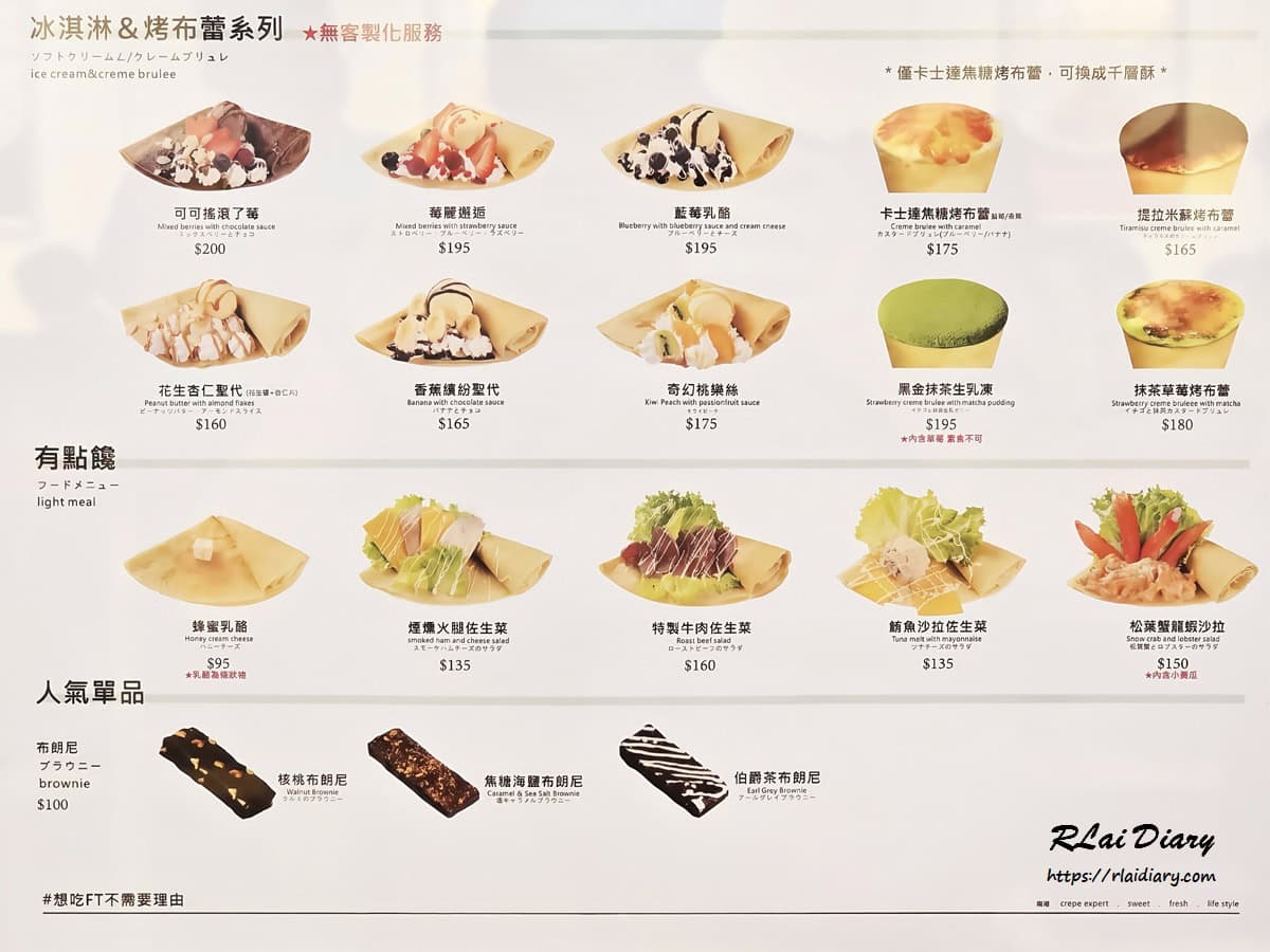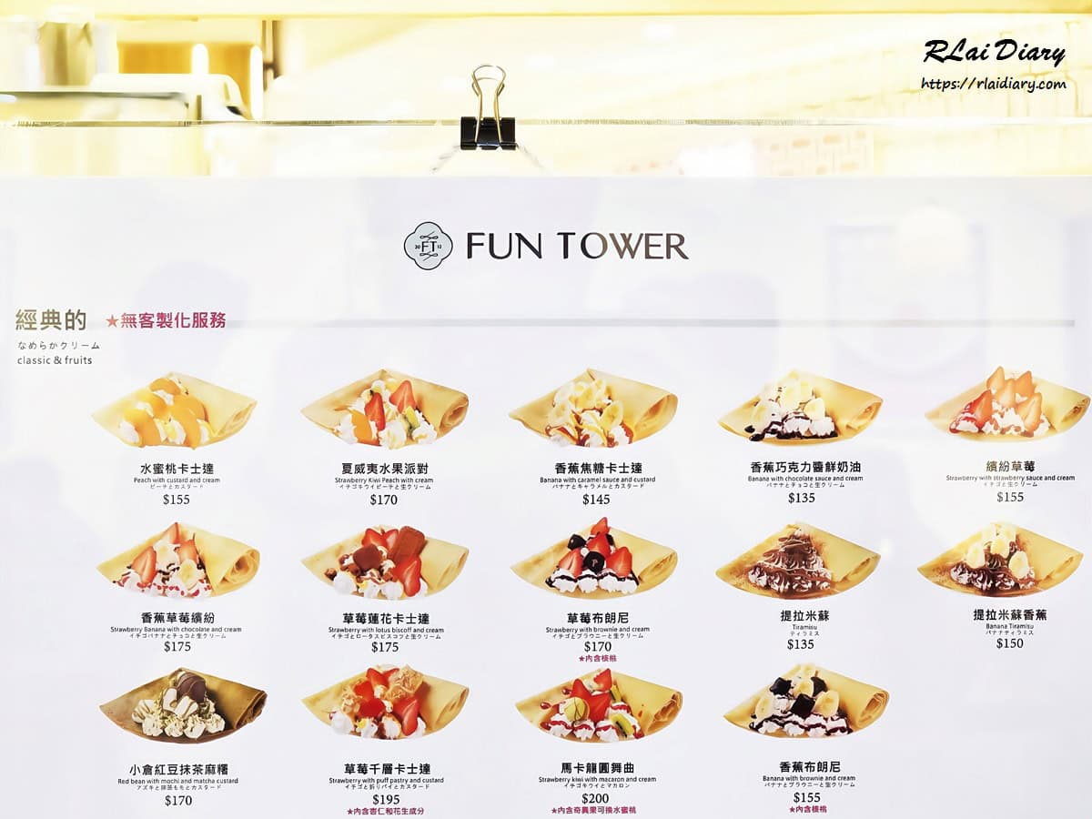 2025/07/21台北美食【台北※食】南港區|Fun Tower日式可麗餅 南港LaLaport|現點現做的療癒爆擊源自創辦人甜蜜記憶的Fun Tower,主打現點現做的正統「日式可麗餅」,用柔軟餅皮包裹新鮮水果、冰淇淋與獨家醬料等,甜鹹皆迷人,還有義式Gelato,讓人邊排隊邊心動,吃一口瞬間被療癒! 分享這篇文章 地址:台北市南港區經貿二路131號5樓捷運:1.南港軟體園區站2號出口步行約2分鐘2.南港展覽館站1號出口步行約5分鐘電話:02-2783-3161連結:Fun tower 官網、Fun tower 日式可麗餅臉書營業時間:星期日到星期四 11:00 – 21:00星期五與星期六 11:00 – 21:30 追蹤我的 Instagram 追蹤我的 臉書粉絲團 內容目錄 Toggle Fun Tower日式可麗餅 南港LaLaport 介紹Fun Tower日式可麗餅 南港LaLaport 菜單Fun Tower日式可麗餅 南港LaLaport 餐點心得 Fun Tower日式可麗餅 南港LaLaport 介紹 FUN TOWER 可麗餅品牌的誕生源自創辦人年幼時的甜美回憶無意中吃到人生第一口日式可麗餅後從此那味道深深烙印在心中長大後親赴日本拜師學習製作帶回了道地的技術與風味 品牌目前在北、中、南都有設點這間位在南港 LaLaport 的則是最新分店店面風格乾淨簡約外觀以木質框架設計搭配在美食街眾多品牌中顯的格外清新 現點現做的日式風味可麗餅從倒入麵糊、抹平、加熱到包餡全程透明製作讓人看了不僅安心也多了流口水的衝動啊 而且這裡不只是可麗餅厲害還有多款口味的義式冰淇淋 Gelato讓人在排隊時又不小心失守啦 Fun Tower日式可麗餅 南港LaLaport 菜單 FUN TOWER 的可麗餅選擇超豐富不只是甜點控的天堂鹹食派也能找到喜歡的風味從經典水果到創意冰淇淋等系列每一款都充滿巧思與手作溫度 而義式冰淇淋則是不採傳統挖球方式而是用特殊手法直接裝杯口味多達十餘種目前還有活動優惠 Fun Tower日式可麗餅 南港LaLaport 餐點 盛夏芒果姬 看一眼就讓人淪陷的「盛夏芒果姬」是夏季限定款的人氣商品選用當季新鮮愛文芒果丁鋪好鋪滿 不同於台灣常見的酥脆可麗餅皮這裡是「軟、薄、彈」的日式質地一口咬下帶有微微蛋香與濕潤感能完美包覆各種甜鹹內餡 內層還藏有滑順綿密的芒果冰淇淋以及香甜不膩口的特製黑糖醬與餅皮、奶油形成冰熱交錯的驚喜 最後加上一點奢華金箔點綴不只增添視覺高級感更讓這款可麗餅質感大加分成為芒果控們心中的甜點逸品 伯爵琥珀の奏 同為期間限定的伯爵琥珀の奏用茶凍、珍珠以及奶霜再加上脆迪酥堆疊出層次豐富的畫面感 伯爵茶凍入口即化還有茶香回甘甜度適中的琥珀珍珠 Q 彈有嚼勁最後的脆迪酥更增添趣味性在品嚐這款可麗餅時就像是場用味蕾譜寫的奏鳴曲 卡士達焦糖烤布蕾 登場時焦糖層還閃閃發亮表面經過炙燒後微微冒著糖香讓人著迷的「酥、滑、脆」三要素忍不住想要咬下一大口 中間層是新鮮的草莓還有滑順香濃卡士達醬濃郁度與甜度拿捏的剛剛好與表面溫熱的焦糖形成溫差對比吃的時候每一層都有種驚喜感 追蹤我的 Instagram 追蹤我的 臉書粉絲團 心得 來到 FUN TOWER 不只是滿足味蕾更是現代人心靈的小確幸從經典到創意每一款都誠意十足是少數在台灣能吃到的正統日式口感吃到後會有種「被療癒」的幸福感在 LaLaport 逛累了可以來犒賞一下自己用可麗餅換來一個美好的心情 延伸閱讀 – 周邊美食【台北※食】南港區|茶萃 Cha Trade 南港LaLaport【台北※食】南港區|欣葉小聚 南港店 【台北※食】南港區|Fun Tower日式可麗餅 南港LaLaport地址:台北市南港區經貿二路131號5樓捷運:1.南港軟體園區站2號出口步行約2分鐘2.南港展覽館站1號出口步行約5分鐘電話:02-2783-3161連結:Fun tower 官網、Fun tower 日式可麗餅臉書營業時間:星期日到星期四 11:00 – 21:00星期五與星期六 11:00 – 21:30 分享這篇文章 運彩出金 戰神賽特 咖啡豆挑選 冰萃秘訣 企業禮盒 球隊戰力觀察 標籤# 南港LaLaport美食# 台北南港區美食# 台北甜點# 捷運南港展覽館站美食# 捷運南港軟體園區美食 上一 文章 【台北※食】南港區|茶萃 Cha Trade 南港LaLaport|選用ITQI 認證茶葉的全新質感手搖 下一 文章 【台北※食】萬華區|Stan & Cat 史丹貓美式餐廳|西門町全日早午餐