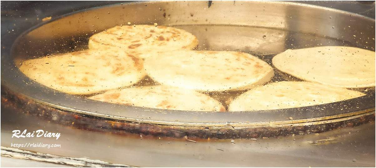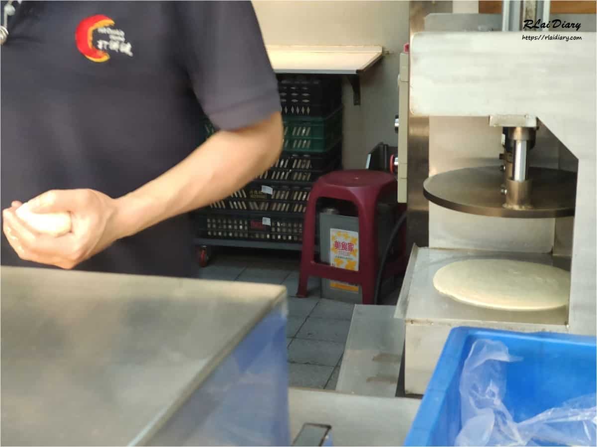 工作人員將麵糰放到機器壓平之後就下鍋去煎