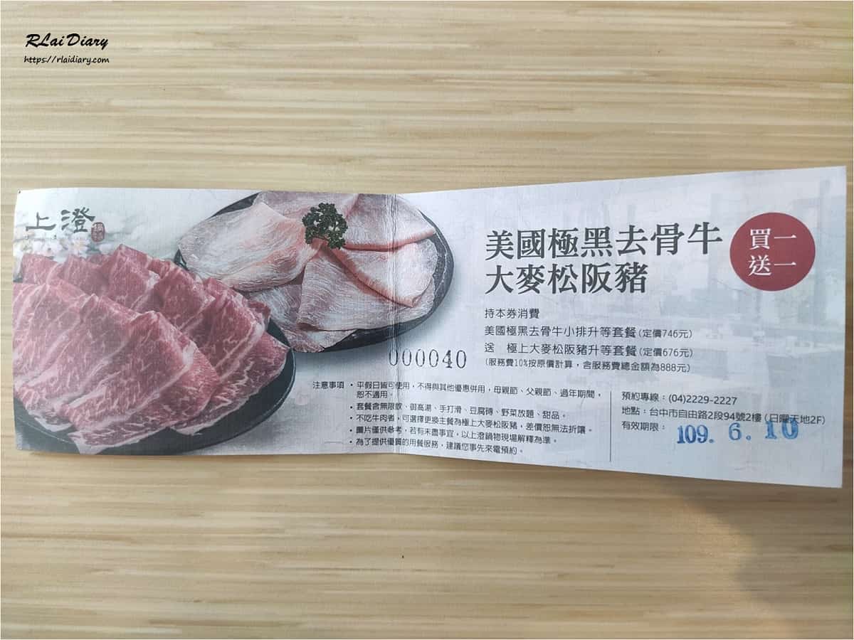 2020/05/24台中美食【台中 ※ 食】中區|上澄鍋物288元起野菜放題吃到飽,數十種新鮮蔬菜任你選 分享這篇文章 地址:台中市中區自由路二段94號2樓 ( 日曜天地 Outlet 2樓 )電話:04-2229-2227聯結:上澄鍋物臉書營業時間:平日 12:00 – 14:30 │ 18:00 – 21:45假日 11:30 – 15:00 │ 17:00 – 21:45 上澄鍋物位在台中日曜天地 Outlet 2F就在台中公園旁大片的落地採光設計能讓人邊用餐邊欣賞綠地美景 每年都會來上澄好幾次除了店內的食材品質不錯外還有一個最大的因素是買一送一優惠啊 … XD只要加入日曜天地 Outlet 的會員 ( 免費申辦 )生日當月會通知贈送生日優惠券 !!!( 這幾年都是上澄鍋物買一送一 ) 追蹤我的 Instagram 追蹤我的 臉書粉絲團 上澄鍋物 菜單 主餐部分從 388 元起也可以加價 88 元升級升級後能再多選擇豆腐磚和手打滑各 1 種 上澄鍋物更推出野菜放題288 元起 / 人精選 25 種以上新鮮蔬菜供您無限享用野菜吧包括:當季野菜、米飯、風味飯、日式蕎麥麵、烏龍冷麵 … 簡單說就是自助吃到飽的部分如果點任一主餐也有包含這部分一樣可以無限享用 野菜放題 – 新鮮野菜 嚴選高品質的蔬菜而且種類不少又擺放的很整齊看了就覺得有質感很好吃的感覺 野菜放題 – 烏龍冷麵 超愛這裡的烏龍冷麵麵條吃起來很 Q 彈加上特製的醬料和小菜每次來都吃上好幾碗 … XD 野菜放題 – 風味飯 上澄提供了白飯和風味飯 2 種米飯類白飯感覺比較不特別所以從來沒去開來看過 … 哈哈風味飯吃起來清爽不油膩感覺很特別也非常好吃 野菜放題 – 飲品 飲品的部分蠻養生的提供了青仁黑豆茶 (熱) 跟珍珠薏仁露 (冷) 黑豆茶是無糖的,喝的到黑豆香氣 薏仁露則是微甜,帶一點點濃稠感2 種飲品都不錯喝 湯頭 – 山藥玄米鍋 使用山藥、玄米與味噌熬製適合搭配肉品與海鮮類 湯頭 – 南瓜咖哩鍋 以南瓜、咖哩粉、肉桂、洋蔥、老薑和橄欖油熬製適合搭配肉品 湯頭 – 柴香昆布鍋 使用昆布、柴魚和洋蔥熬製的湯底適合搭配肉品和海鮮 如果覺得湯底不夠了自助區也有湯底可以補充 醬料 醬料區有不少選擇但是沒有常見的沙茶醬 … XD 主餐 – 美國極黑去骨牛 │ 658 元 選用有美國牛肉協會認證的安格斯黑牛油花分布十分美麗放進鍋內稍微燙過即可吃來肉質軟嫩滑順 主餐 – 大麥松阪豬 │ 588 元 採用吃大麥長大的豬隻肉片的 Size 蠻大的入口沒有腥味口感爽脆彈牙讓人驚豔 主餐 – 海物四重奏 │ 388 元 包含鮮魚、銀槍烏賊、鮮蚵和蛤蜊海鮮的品質都不錯感覺也都很新鮮 手打滑 – 胡椒鮮蝦 & 青醬花枝 │ 加價 88 元升級 店家特製的手打滑口感扎實除了魚漿外分別還能吃到蝦子和花枝 豆腐磚 – 黑豆豆腐磚 & 油揚豆腐磚 │ 加價 88 元升級 旁邊附的是玉子燒跟栗子玉子燒甜甜的味道個人蠻喜歡的豆腐磚則是有濃郁豆香味 甜品 – 抹茶冰淇淋 │ 古早杏仁茶 │ 紫米紅豆湯 3 種甜品個人覺得都很不錯就看個人喜好選擇 平均花費與心得此次平均花費金額:378 元 / 人 ( 未包含 10 % 服務費 )P.S 這個平均金額是因為有使用生日優惠券上澄的店內環境和服務都不錯食材也都有一定水準較少加工類的食物整體感覺蠻健康養生的特別適合喜歡蔬食的朋友在鍋物類別算是中高價位如果有搭配優惠券就更好啦 … XD 延伸閱讀 – 周邊美食【台中 – 食】丰盛町【台中 – 食】花蓮瑞穗臭豆腐【台中 – 食】一中街打餅舖烙餅【台中 – 食】飛機河粉 – 台中中友店【台中 – 食】12MINI 即享鍋 – 中友店 活動限定只要30元吃王品鍋物 【台中 – 食】上澄鍋物 地址:台中市中區自由路二段94號2樓 ( 日曜天地 Outlet 2樓 )電話:04-2229-2227聯結:上澄鍋物臉書營業時間: 平日 12:00 – 14:30 │ 18:00 – 21:45假日 11:30 – 15:00 │ 17:00 – 21:45 分享這篇文章 運彩出金 戰神賽特 咖啡豆挑選 冰萃秘訣 企業禮盒 球隊戰力觀察 標籤# 松阪豬# 火鍋# 烏龍麵 上一 文章 【台中 ※ 食】北屯區|厝秘 - 功夫菜‧手路湯 下一 文章 【台中 ※ 食】西區|好口味芋頭米粉湯