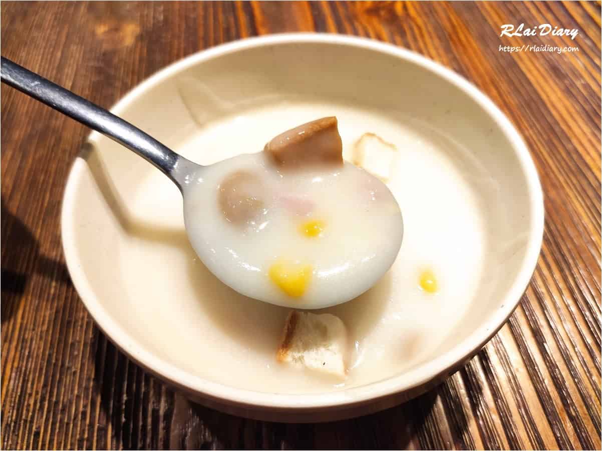另外還有吐司丁可以加到玉米濃湯裡頭