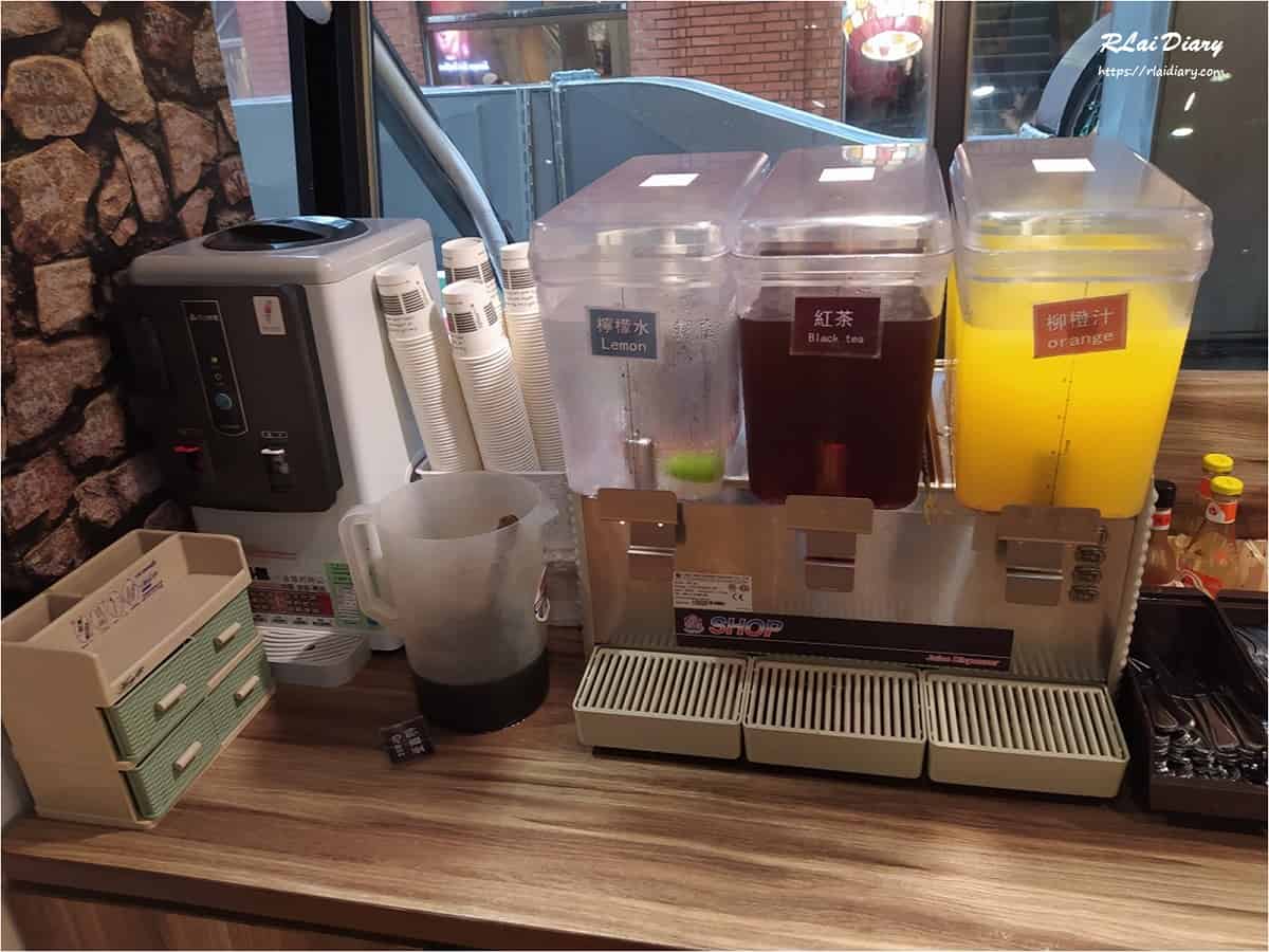 飲料的部分有仙草茶、檸檬水、紅茶和柳橙汁