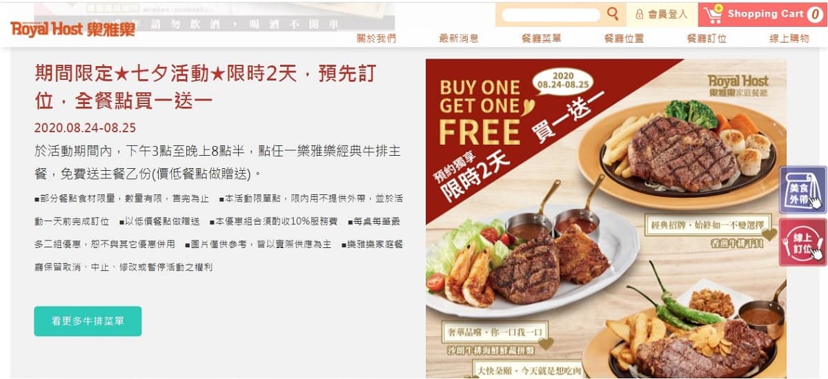 2020/09/06台北美食【台北 – 食】中正區 │ Royal Host 樂雅樂家庭餐廳 站前店來自日本連鎖家庭餐廳,提供以日式手法的創意西餐料理。從早餐到晚餐,大人到小孩都適合的選擇 分享這篇文章 地址:台北市中正區許昌街19號捷運:捷運台北車站Z2號出口步行約2分鐘電話:02-2371-3128連結:樂雅樂官網、樂雅樂臉書營業時間:07:00 – 22:00 追蹤我的 Instagram 追蹤我的 臉書粉絲團 內容目錄 Toggle Royal Host 樂雅樂家庭餐廳 站前店 介紹Royal Host 樂雅樂家庭餐廳 站前店 菜單Royal Host 樂雅樂家庭餐廳 站前店 餐點平均花費與心得 Royal Host 樂雅樂家庭餐廳 站前店 介紹 樂雅樂是來自日本連鎖家庭餐廳提供日式手法的創意西餐料理在全省有不少間分店前一陣子剛好有七夕活動點任一經典牛排主餐免費送主餐一份的活動看到訊息之後就立即預約訂位了 這次選擇的是台北站前店交通地理位置相當方便 店內空間是類似日本洋食屋的感覺簡單舒適的用餐環境搭配半開放式的廚房 Royal Host 樂雅樂家庭餐廳 站前店 菜單 樂雅樂的餐點種類真的蠻廣泛的不但有多人套餐組合也有牛排、義大利麵、日式御膳套餐、蔬食料理、兒童餐、輕食點心及飲品還能加價升級套餐跟本是從早餐一直到晚餐大人到小孩通通都包辦了也可以參考下方連結訂購更優惠的電子票券經典不敗的超值和食首選樂雅樂家庭餐廳 Royal Host 樂雅樂家庭餐廳 站前店 餐點 軟法麵包 │ 升級套餐內容 升級套餐可以在│白飯│軟法麵包│山型麵包│當中三選一這次選擇了軟法麵包外層烤的微酥脆內部口感鬆軟紮實 玉米巧達湯 │ 升級套餐內容 套餐可以在│玉米巧達湯│蕈菇清湯│牛肉蕃茄蔬菜湯│法式洋蔥湯│當中四選一這次選擇的是玉米巧達湯玉米的甜味搭配奶味鹹甜適中喝起來順口不會太過濃稠 香煎牛排干貝 │ 500 元 因為活動需要點一份經典牛排的規定所以選擇這道香煎牛排干貝牛排附上黑胡椒醬搭配北海道干貝的海陸組合牛肉使用紐西蘭天然放牧草飼牛邊緣部分稍微帶點肉筋整體表現沒有讓人特別驚豔但還算可以接受 另外一個重點則是干貝啦來自北海道的干貝上桌後別在鐵板上放太久以免讓鐵板熱度影響口感鐵盤旁邊還有炸薯條跟紅蘿蔔及花椰菜在牛排下面則是洋蔥絲兼具營養均衡與擺盤美感 蒜香蕃茄海鮮義大利麵 │ 290 元 微酸番茄醬汁與海鮮搭配蒜香與海味組合吃來相當開胃麵條軟硬適中海鮮食材也給的不少 栗子抹茶凍 │ 升級套餐內容 抹茶凍加入栗子丁增添栗子的香氣口感清爽抹茶控最愛 焦糖布蕾 │ 升級套餐內容 布蕾表面烤上誘人的咖啡色焦糖淡淡苦甜焦糖香氣一上桌就秒殺吃光啦 特選奶茶 │ 升級套餐內容 柳橙汁 │ 升級套餐內容 飲品部分中規中矩沒有什麼特別的印象 … XD 追蹤我的 Instagram 追蹤我的 臉書粉絲團 平均花費與心得 此次平均花費金額:355元 / 人 ( 未包含 10 % 服務費 )金額部分是扣除活動贈送較低價格的主餐後計算樂雅樂的餐點種類真的很多選擇十分豐富但是價位部分不夠親民升級套餐後均價約四百元起跳真的是不算便宜阿如果沒有特殊活動優惠的情況下可能只適合偶爾為之可以參考下方連結訂購更優惠的電子票券經典不敗的超值和食首選樂雅樂家庭餐廳 延伸閱讀 – 周邊美食【台北 – 食】中正區 │ HALOA POKE 夏威夷拌飯 南陽店【台北 – 食】中正區 │ 周記手工家常麵【台北 – 食】中正區 │ Woosa 屋莎鬆餅屋 台北京站店【台北 – 食】中正區 │ BELLINI Pasta Pasta 台北京站店【台北 – 食】中正區 │ N.Y.Bagels Cafe 紐約貝果 京站店【台北 – 食】中正區 │ 呷米蔬食【台北 – 食】中正區 │ 雙月食品社 青島店【台北 – 食】中正區 │ 阜杭豆漿【台北 – 食】中正區 │ 國軍英雄館 養生早餐 【台北 – 食】中正區 │ Royal Host 樂雅樂家庭餐廳 站前店地址:台北市中正區許昌街19號捷運:捷運台北車站Z2號出口步行約2分鐘電話:02-2371-3128連結:樂雅樂官網、樂雅樂臉書營業時間:07:00 – 22:00 分享這篇文章 運彩出金 戰神賽特 咖啡豆挑選 冰萃秘訣 企業禮盒 球隊戰力觀察 標籤# 台北中正區美食# 台北車站美食# 台北轉運站美食 上一 文章 【台北 – 食】中正區 │ 竜丼日式料理 下一 文章 【台北 – 食】中正區 │ NALA's Mexican Food