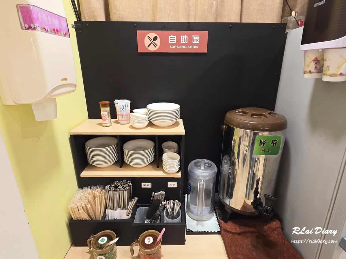 放置了碗盤餐具及辣椒、蔥花等調味配料