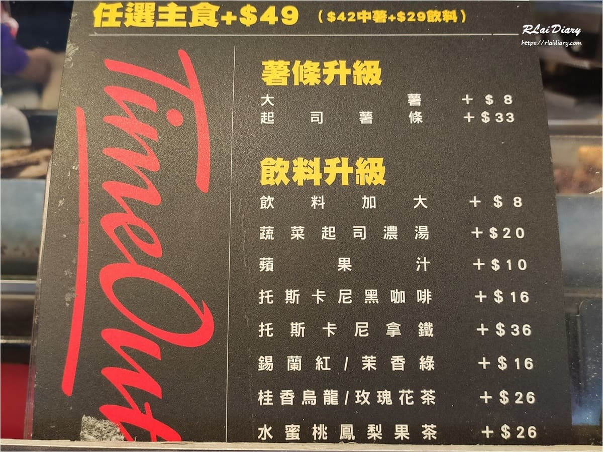 2020/05/02台北美食【台北 ※ 食】萬華區|Tulip TimeOut 西門店來自丹麥百年歷史品牌熱狗堡,XXL 重量級超大Size 分享這篇文章 地址:台北市萬華區成都路6號捷運:西門站1號出口旁電話:02-2370-8118聯結:Tulip TimeOut 臉書營業時間:週日至週四 11:30 – 23:00 星期五、六 11:30 – 24:00 丹麥這個國家的名字一般人並不陌生但好像對這個國家的食物沒有印象位在捷運西門站 1 號出口旁的 TimeOut主打的就是正宗丹麥熱狗堡 TimeOut 西門店的一樓為點餐區與料理區雖然感覺外帶的人比較多但二樓還是提供了用餐空間 坐在 2 樓窗邊悠閒的用餐與外面捷運出入口人潮急促的步調形成強烈對比讓人放鬆後覺得餐點更加美味 追蹤我的 Instagram 追蹤我的 臉書粉絲團 TimeOut 菜單 熱狗堡的部分標示了 Size分別為 S、M、XL、XXL上面標示的價格都是單點的價位因為 TimeOut 的熱狗和多數食材為丹麥製造、丹麥進口所以價格稍微高一點點加價 49 元可以升級套餐套餐內容是多一份中薯和 29 元飲料任選另外 KLOOK 客路 也有TimeOut的優惠會比在現場買划算喔點我前往 KLOOK 客路 點完餐後可以上 2 樓等工作人員叫號再來取餐但出餐速度其實蠻快的所以建議在 1 樓稍等一下就好才不用跑來跑去還能順便比較一下煎台上不同 Size 的熱狗大小 雷神索爾熱狗堡套餐 │ 244 元 ( 單點 195 元 ) 很有勇氣的點了最大 Size XXL 號的雷神索爾熱狗堡套餐拿到餐點時看到和托盤長度差不多的熱狗堡時愣了好一會兒 … Size 超過 15 公分的熱狗加上酸黃瓜、洋蔥、彩椒及墨西哥辣椒等配料以及脆口的洋蔥脆酥加上特製醬料 熱狗煎到表層帶有脆脆的口感搭配有嚼勁的麵包大口咬下後超級過癮但 XXL 份量真的很多整個套餐吃了約 2 / 3 後就飽了食量不大的人不要輕易嚐試 … XD 炸到金黃的薯條口感香脆不論是單吃或沾點附贈的沾醬都很好吃 丹麥傳統豬肉堡套餐 │ 174 元 ( 單點 125 元 ) 放在煎台上處理過的漢堡外皮有些微的脆度搭配紫甘藍醃菜、酸黃瓜、脆口的洋蔥脆酥加上特製醬料豬肉帶有酥脆的外皮咬下去都是肉香味比起熱狗堡,個人更喜愛這個豬肉堡 平均花費與心得此次平均花費金額:NT 209 元 / 人在台灣就可以吃到來自丹麥的美食食材和口味也都有不錯的水準是會讓人想再訪的速食店價位的部分雖然有稍微高一些不過 KLOOK 客路 也有TimeOut的優惠會比在現場買划算點我前往 KLOOK 客路 延伸閱讀 – 周邊美食【台北 – 食】浩克健身早餐 – 西門町紅樓店【台北 – 食】天天利美食坊【台北 – 食】師園鹽酥雞 – 西門店【台北 – 食】阿宗麵線 – 西門店 【台北 – 食】TimeOut – 西門店地址:台北市萬華區成都路6號捷運:西門站1號出口旁電話:02-2370-8118聯結:Tulip TimeOut 臉書營業時間:週日至週四 11:30 – 23:00 星期五、六 11:30 – 24:00 分享這篇文章 運彩 賽特 咖啡豆推薦 咖啡知識 禮盒推薦 世界盃預測 標籤# KLOOK# 丹麥# 熱狗堡# 西門町 上一 文章 【台北 ※ 食】萬華區|天天利美食坊 下一 文章 【台北 ※ 食】中正區|高三孝碳烤吐司 南昌總店