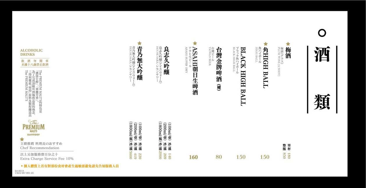 此次平均花費金額:NT 870 元 / 人 (未包含 10 % 服務費)