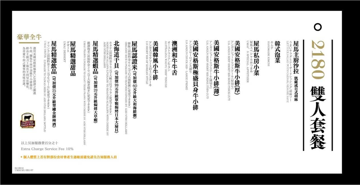 屋馬精選肉品 │ 美國韓風小牛排 – 1680 雙人套餐內容
