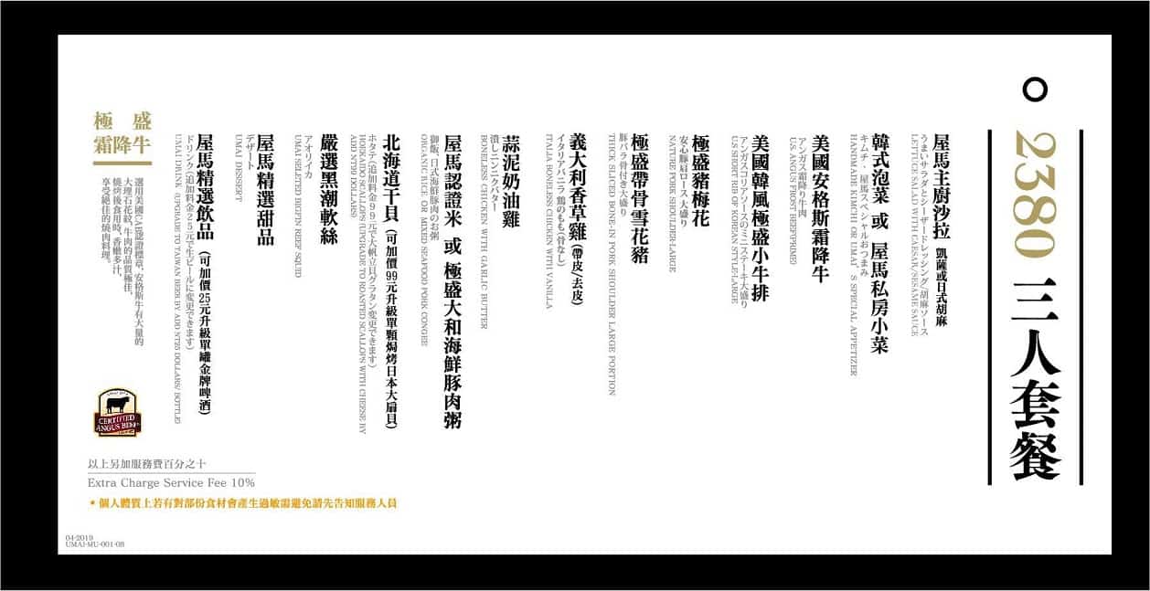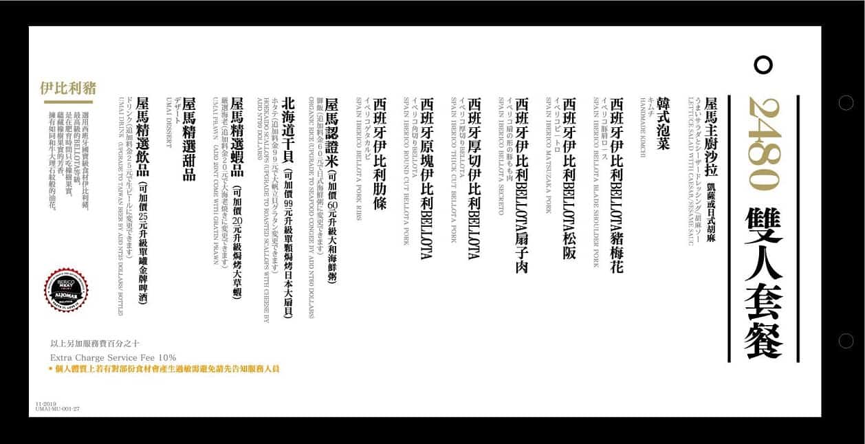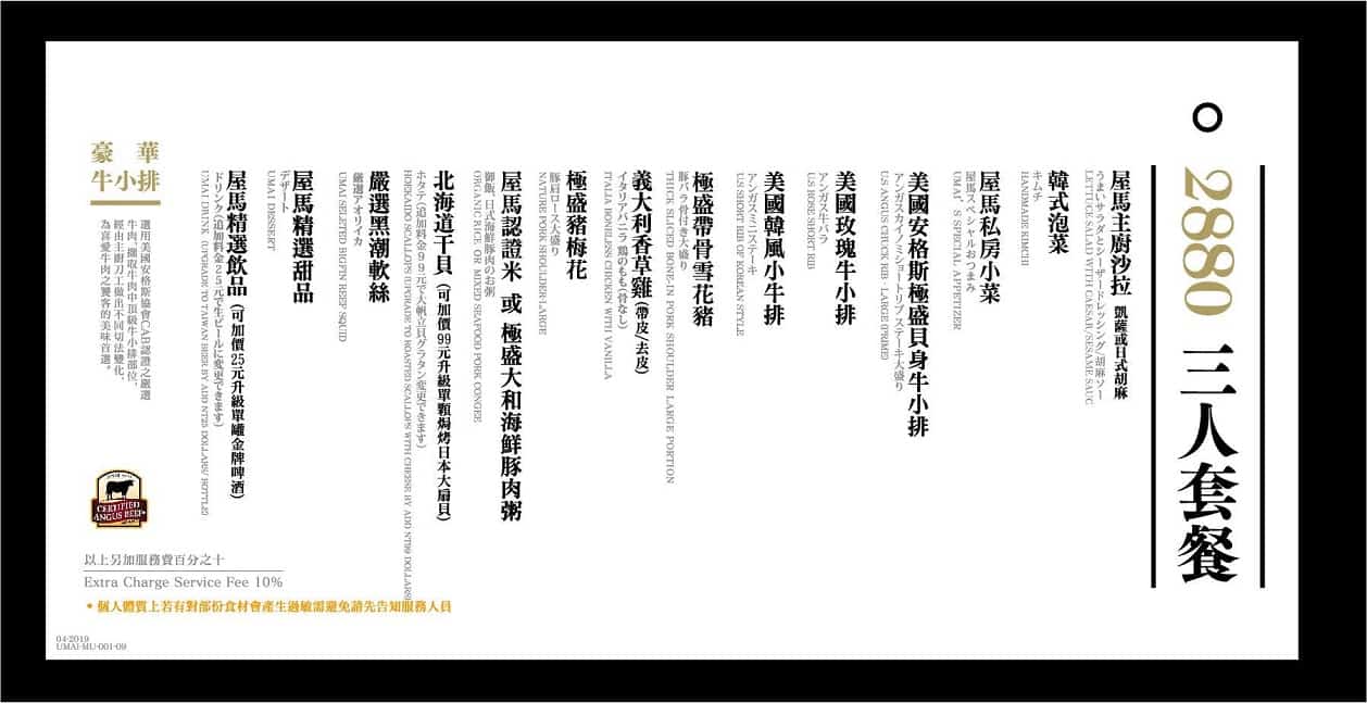 屋馬的菜單因為有雙人套餐、三人套餐、單點
