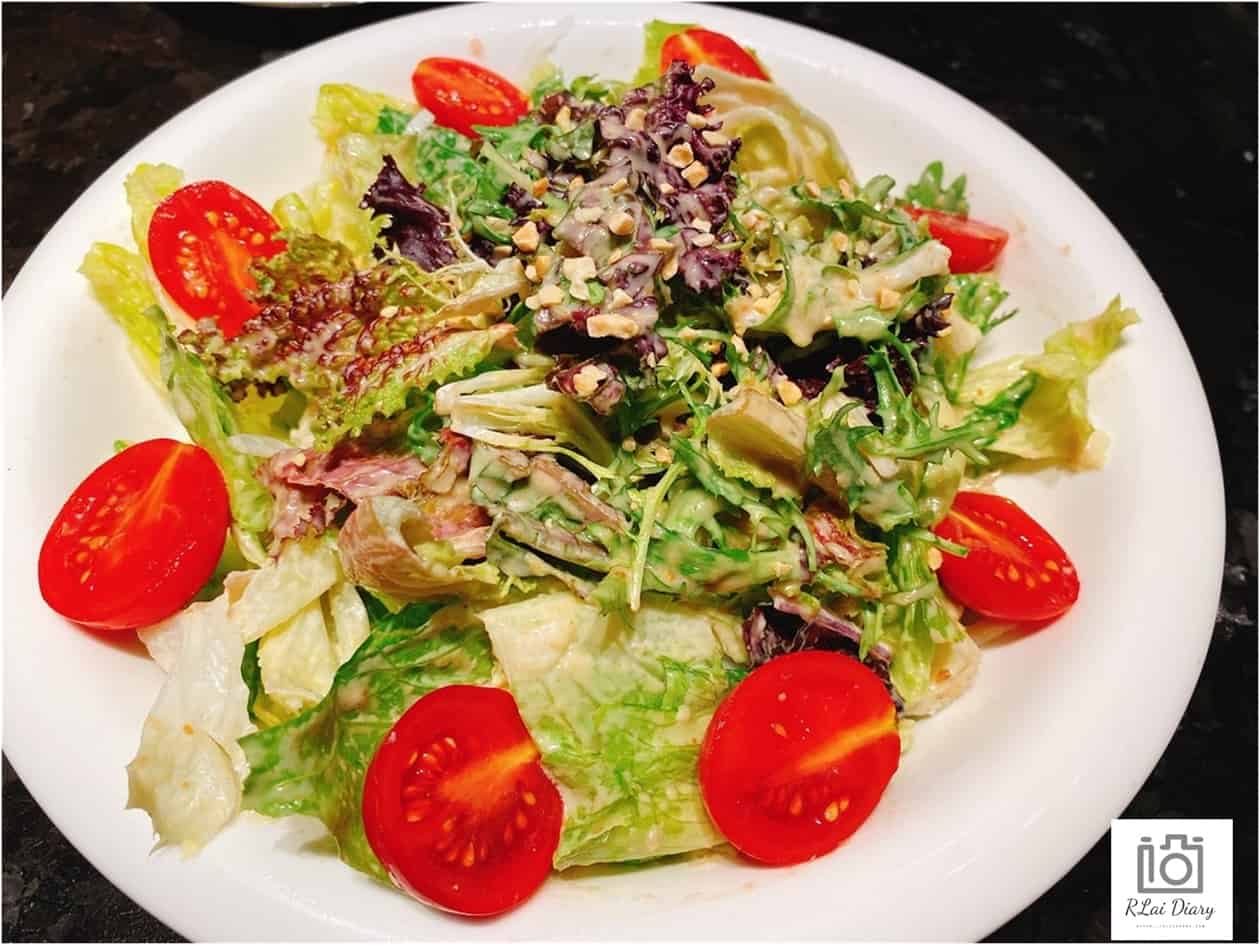 屋馬主廚沙拉提供了凱撒醬和日式胡麻醬 2 種選擇
