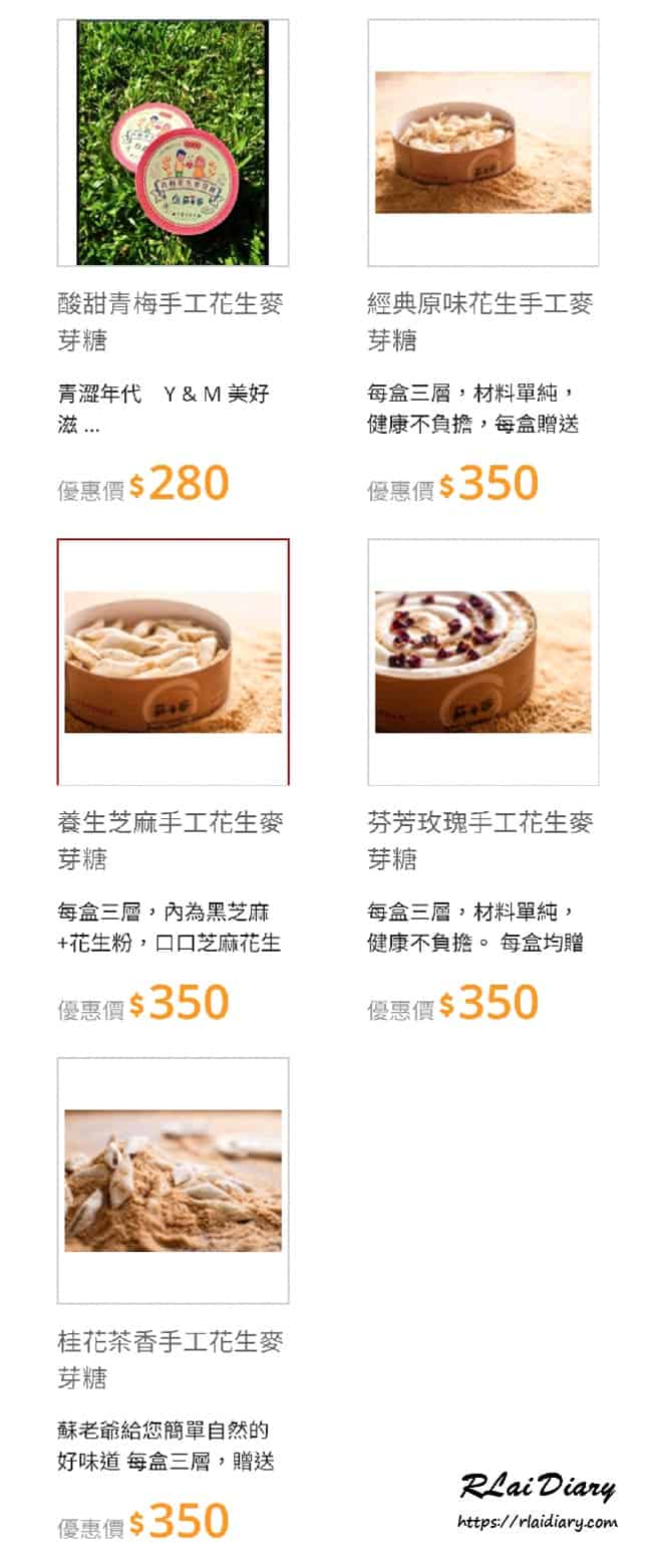 2020/05/31台灣美食【高雄 ※ 食】鳥松區|蘇老爺古味創新館花生麥芽糖40年老店手工限定古早味甜點,高雄人氣團購伴手禮 分享這篇文章 地址:高雄市鳥松區仁勇路181號電話:07-732-8158聯結:蘇老爺古味創新館官網營業時間:09:30 – 18:30 最近因為工作的關係要到高雄上課受訓對於沒有交通工具的外地人來說宿舍附近真的很不方便除了餐廳和便當外沒什麼選擇好在當地的同仁推薦了附近的「蘇老爺」讓我們解解饞 蘇老爺店裡的商品種類不少除了主打的花生麥芽糖系列外還有鮮果干、牛軋糖、養生釀、堅果酥及茶包等品項 店家接受過許多媒體的介紹網路上也有蠻多團購推薦文章 追蹤我的 Instagram 追蹤我的 臉書粉絲團 蘇老爺古味創新館花生麥芽糖 價位 因為商品的品項種類較多所以只放上最熱門的花生麥芽糖系列其他商品的價位可以上官網參考聯結:蘇老爺古味創新館官網 麥芽糖系列以往似乎是秋冬限定因為天氣越熱麥芽糖會越軟不過現在夏天也買的到只不過店家做的量會少一些如果怕撲空可以先電話確認 原味花生手工麥芽糖 │ 350 元 店家很貼心的附上一把小剪刀和塑膠手套可以戴著手套拿剪刀將麥芽糖剪成方便食用的大小自己動手感覺也蠻有趣的 盒子直徑大小16公分開箱後每盒麥芽糖共有三層看起來有點像「蚊香」…. XD 店家強調花生麥芽糖製作過程中不添加任何固形劑和砂糖室溫可以放到 7 天左右但建議開封沒吃完可以放冷藏或冷凍保存 花生粉的香氣濃郁麥芽糖的口感很細緻口感外層微硬內軟Q麥芽糖甜而不膩但個人覺得有一點點黏牙啦不知道是不是受氣溫影響 … ? 平均花費與心得此次平均花費金額:NT 350 元傳統古早味的甜甜滋味商品視覺效果和 DIY 樂趣也不錯自己吃或送禮都不錯只是要注意存放溫度和時間如果沒辦法一次吃完的話建議先剪好再冰因為變硬不好剪阿 … XD 【高雄 – 食】蘇老爺古味創新館花生麥芽糖地址:高雄市鳥松區仁勇路181號電話:07-732-8158聯結:蘇老爺古味創新館官網營業時間:09:30 – 18:30 分享這篇文章 運彩出金 戰神賽特 咖啡豆挑選 冰萃秘訣 企業禮盒 球隊戰力觀察 標籤# 伴手禮# 花生粉# 蘇老爺# 麥芽糖 下一 文章 【新北 – 食】Sipping Cafe Bistro 啜飲餐酒館